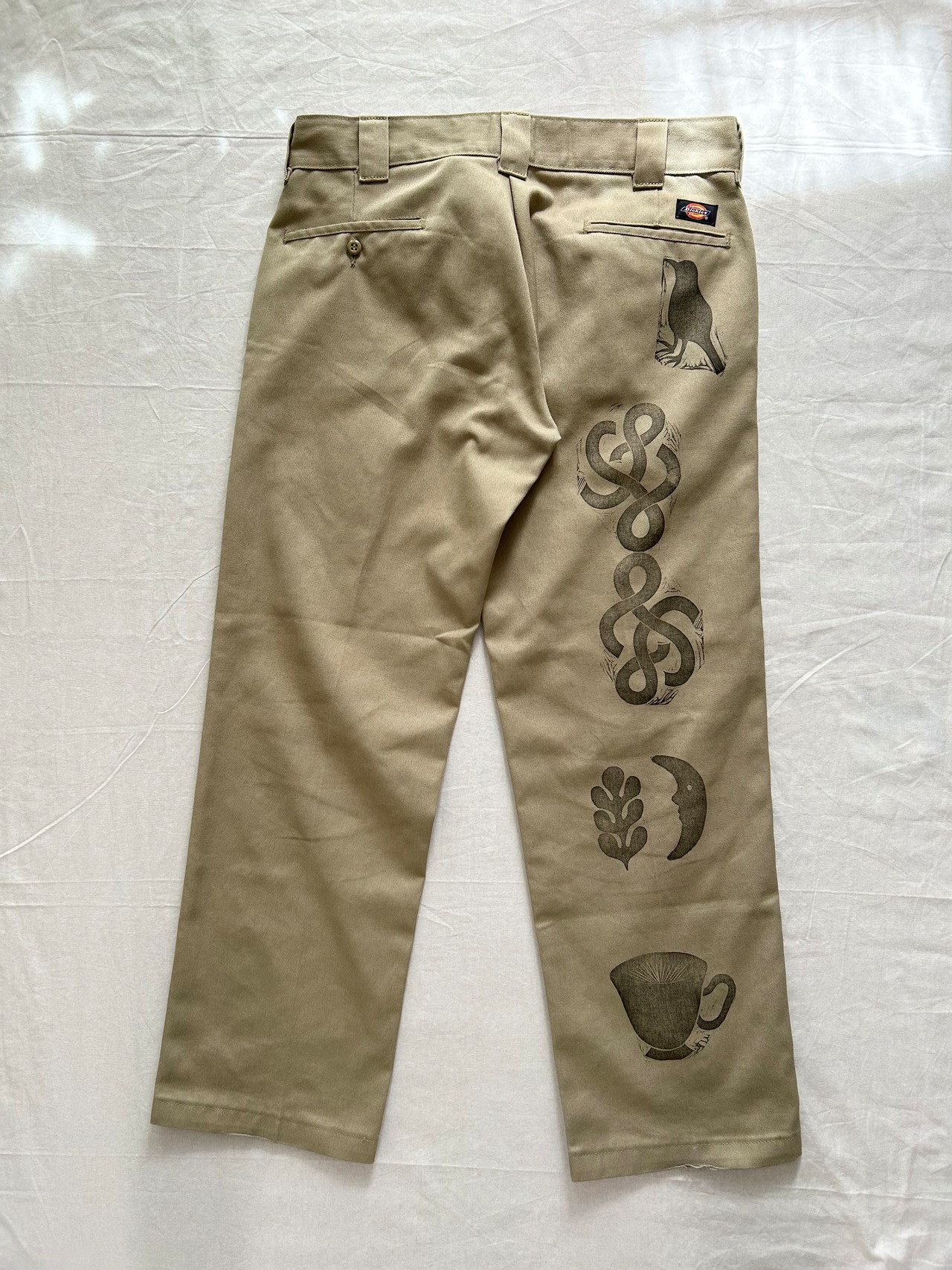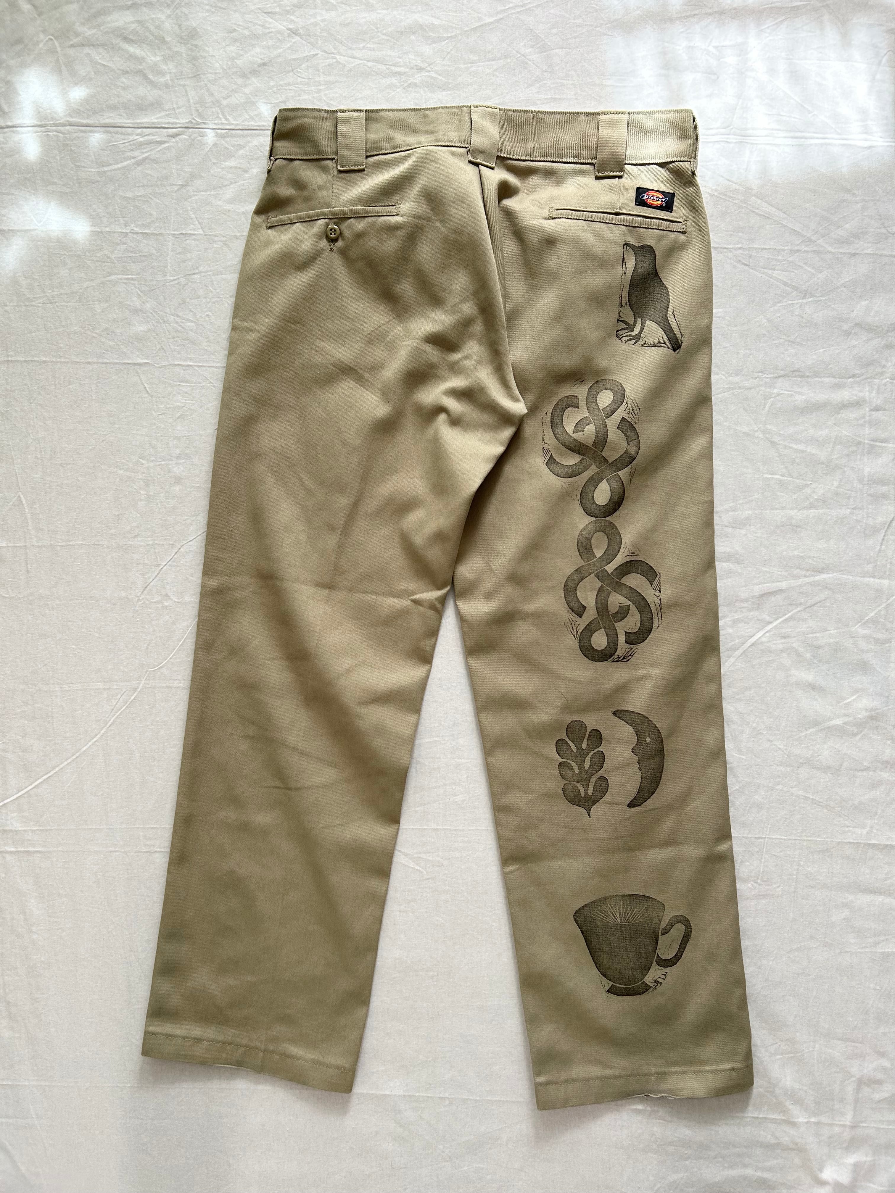 古着のリメイクアイテムであることをご理解ください。右足裾の後ろにスレによるほつれあり。