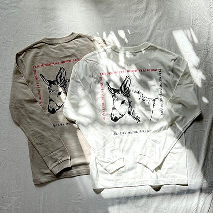 パレスチナのロバロングスリーブT(オーガニックコットン)